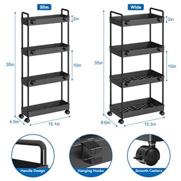 2 Pack 4 Tier Slim Storage Cart - Versatile Utility for Every Space