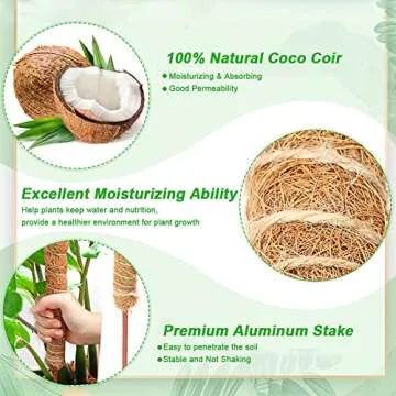 2 Pack 45" Bendable Moss Pole for Climbing Plants, Monstera Moss Poles Coco Coir Plant Stakes, Slim Moss Stick, Potted Plants Support Stakes, Perfect for Small Medium Climbing Plant Growth Indoor