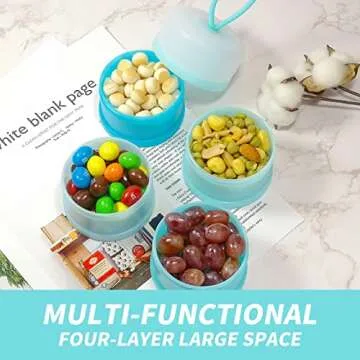 Experience true versatility with its multi-functional four-layer design. This innovative stacking approach lets you organize up to four portions of formula (50g per layer), perfect for long outings or short trips. The funnel-top design means you can pour the formula into any size bottle without creating a mess, while the silicone handle cap provides a secure grip for easy transport. Whether you are in the park, running errands, or traveling, this dispenser fits seamlessly into your diaper bag or stroller for hassle-free access!