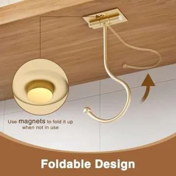 2-Pack Banana Hook Under Cabinet: Banana Holder,Metal Banana Hanger Hook,Adhesive Banana Hook, Foldable Banana Hook, Folds Up With Magnets When Not In Use, Banana Rack,Keep Bananas Fresh (Gold)