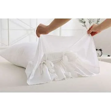 2-Pack Bright White Pillow Cases Shams Covers with Long Ruffles Shabby Chic Egypt Cotton Queen Size 20"X30"Soft Soft