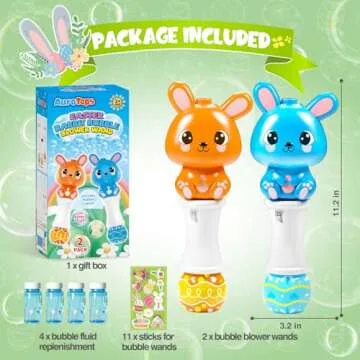 2 Pack Bubble Wands for Kids, Automatic Bubble Blower Machine with Light for Kids Boys Girls, Bunny Bubble Maker with 4 Bubble Solution & Stickers, Summer Outdoor Indoor Activity Easter Gifts
