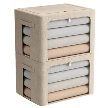 Show moreIntroducing the 2 Pack Clear Window Storage Bins, the ultimate solution to your organization struggles! Crafted from premium-quality linen fabric, these large storage boxes blend style with functionality, making them a must-have for every home. Each bin measures 19.7 x 15.7 x 12.6 inches, offering ample storage space for everything from clothes and linens to toys and craft supplies. Designed to not only keep your items dust-free but also ensure they are kept in an organized manner, these bins will revolutionize your living spaces.