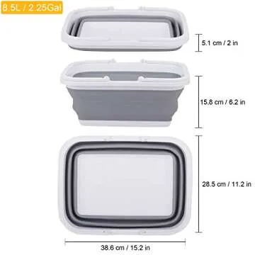Show moreIntroducing the ultimate solution for your outdoor and indoor washing needs: the 2 Pack Collapsible Sink! Measuring 15.2” L x 11.2” W x 6.2” H, with an impressive capacity of 2.25 gallons (8.5L) each, these innovative wash basins are designed to make your life easier. Made from high-quality thermoplastic rubber (TPR), they are BPA-free and dishwasher safe, ensuring durability and safety for all your washing tasks. Ideal for camping, hiking, and home use, you can finally say goodbye to bulky sinks that take up precious space.