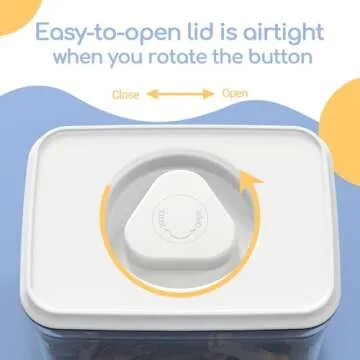 Show moreIntroducing our 2 PACK Dog Treat Container, the perfect solution for pet owners looking to keep their furry friends' snacks fresh and organized. With a patented airtight lid, this container is designed with a unique triangular button for easy twisting, ensuring a strong, secure seal every time. Crafted from a thick, durable plastic, it withstands the rigors of daily use better than traditional glass or ceramic alternatives, offering both strength and portability. You can trust that your dog treats will remain dry and fresh, ready for every rewarding moment.