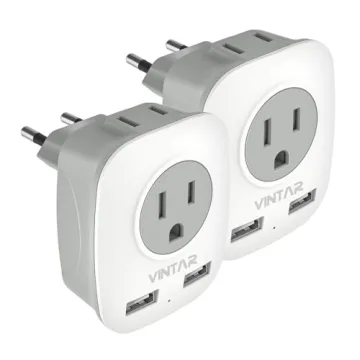 Show moreEmbarking on an adventure across Europe? Look no further than the 2 Pack European Travel Plug Adapter by VINTAR—your ticket to effortless connectivity wherever you roam. This travel essential is specifically designed to cater to your needs as a globe-trotter, transforming a single European Type C socket into two standard American outlets and two USB charging ports. With a maximum capacity of 3750 Watt (max 250 Volt, 15 A), you can charge up to four devices simultaneously—ideal for keeping your smartphone, laptop, camera, and power bank powered up and ready for your next adventure.
