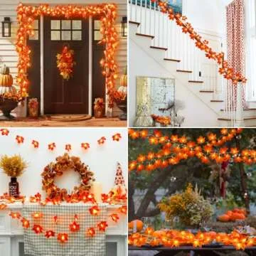 Show moreIntroducing our stunning **2 Pack Fall Decor Garland**, the ultimate addition to your autumn decoration collection. Stretching a total of **20 feet** with **40 LED lights** and adorned with **80 vibrant maple leaves**, this enchanting garland will transform your indoor and outdoor spaces into warm and inviting settings. Perfect for Thanksgiving, Halloween, and other festivities, each set operates on **3 AA batteries** (not included), so you can place them anywhere without fussing over plugs. Enjoy two lighting modes – a steady glow or a delightful flash – to set the mood just right!