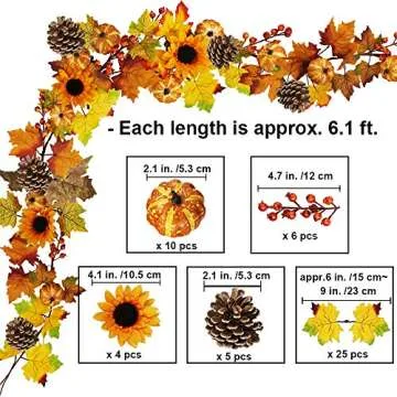 2 Pack Fall Maple Leaf Garland - 6ft/Piece Artificial Berries Sunflower Pumpkin Autumn Garland Decoration for Wedding Party Thanksgiving Dinner Fireplace Door Frame Doorway Backdrop Decor
