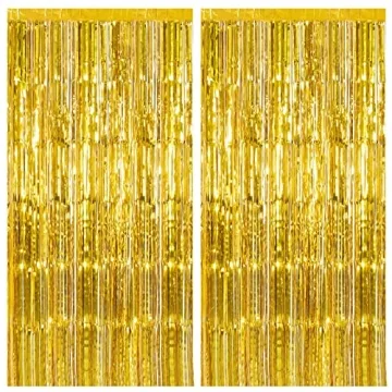 Show more Elevate your celebrations with our stunning 2 Pack Gold Backdrop Decorations, specially designed to bring a vibrant atmosphere to any occasion. Each pack includes two pieces measuring 3.28 ft x 6.56 ft, offering a generous amount of shiny tinsel that radiates joy and elegance. Whether you're preparing for a birthday bash, an elegant wedding, or a festive Christmas gathering, these foil curtains serve as the perfect backdrop to make your event memorable. Crafted from durable tinsel, our metallic fringe is not only visually appealing but also reusable, ensuring that each celebration is as glamorous as the last.