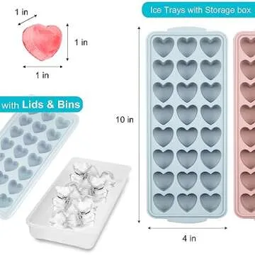 Show more Introducing the perfect addition to your kitchen that not only cools down your drinks but also adds a touch of creativity! The FOSOE heart-shaped ice cube trays are made from 100% BPA-free food grade silicone, ensuring that your ice cubes are safe and healthy to use. These fun-shaped molds come with a lid and storage box, making them not just practical but also a delightful experience for any occasion. The leak-proof design keeps your ice cubes fresh while insulating against dust and refrigerator odors. With these trays, you can create 48 heart-shaped ice cubes, perfect for impressing guests or adding a charming touch to family gatherings.