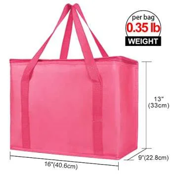2-Pack Insulated Reusable Grocery Shopping Bag, X-Large Frozen Food Cold, Bodaon Cooler Bags with Zippered Top, Insulated Food Delivery Bag, Pink