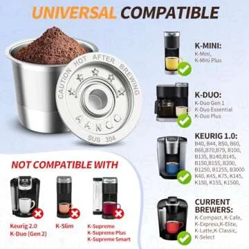Show more Discover the ideal solution for coffee lovers with the AANQQ Reusable Coffee Pods, expertly designed to fit seamlessly in all your Keurig 1.0 coffee machines. These innovative pods ensure that you can enjoy rich, aromatic coffee brewed from your favorite ground beans, without compromising on taste or quality. Each stainless steel pod features a high-density micro-mesh that precisely controls water flow, allowing for even saturation of the coffee grounds. This clever design unlocks the rich oils and aromas that make every cup of coffee a delightful experience.