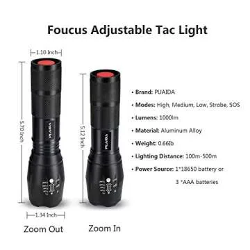 When comparing the PUAIDA Tactical Flashlight to similar products on the market, it clearly stands out for its value and reliability. While many competitors offer flashlights at a higher price without the same level of durability or brightness, PUAIDA provides a quality product at half the cost with a satisfaction guarantee. The adjustable focus feature and five versatile modes further enhance its usability, making it suitable for both casual and professional settings.