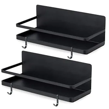 2 Pack - Magnetic Spice Rack, Fridge Organizer Shelf, Side Wall Refrigerator Storage for Spices, Utensils or Plates, Works as Towel Holder with Hooks, Organization for Home and Kitchen (Black)