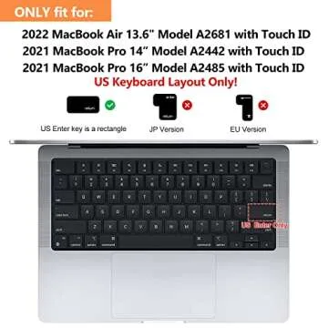 Show more Introducing the ProCase Keyboard Cover, a perfect companion for your 2022 MacBook Air 13.6 inch (Model A2681 M2), 2021 MacBook Pro 14 Inch A2442 & Pro 16 inch A2485. This ultra-thin keyboard skin protector is designed to provide maximum protection without compromising your typing experience. Made from a high-quality TPU material, its 0.1mm thickness ensures that your keyboard's backlight shines through brilliantly. Whether you're working, studying, or enjoying your favorite content, this clear and soft keyboard cover is the ideal solution to keep your keys safe and clean.