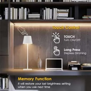 2-Pack Rechargeable Table Lamps, LED Cordless Table Lamp, 3W 5500mAh Battery Operated Table Light, Stepless Dimming Portable Table Light Waterproof for Restaurant/Indoor/Outdoor (White)