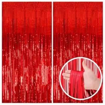 Show moreElevate your celebrations and create magical moments with our captivating 2 Pack Red Streamers Party Backdrop, the ultimate choice for any festive event! Each pack features generous dimensions of 3.28 ft x 6.56 ft, ensuring your walls or doorways are transformed into a visual spectacle. These glitter tinsel streamers are designed to dazzle, making them perfect for birthday parties, weddings, and holiday festivities alike. With their shimmering allure, they guarantee stunning photo opportunities that will keep your memories alive.