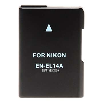 Show moreThe 2-Pack Replacement EN-EL 14A Battery is the ideal power solution for your Nikon camera. Compatible with a wide array of Nikon DSLR models, including D3100, D3200, D3300, D3400, D5100, D5200, D5300, D5500, D5600, and even the COOLPIX series (P7000, P7100, P7700, P7800), this reliable battery ensures that you never miss a moment due to power failure. With its impressive capacity and enhanced performance, you can shoot countless photos and videos without worrying about your battery life. Whether you’re a professional photographer or an enthusiastic hobbyist, this battery pack is crafted to keep your camera running when you need it most.