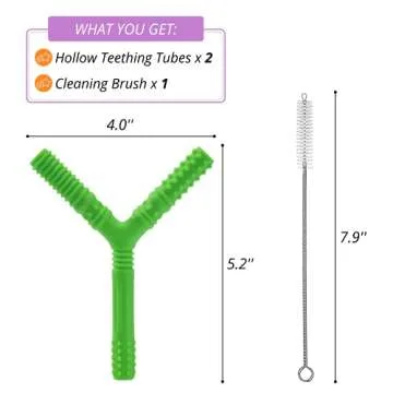 Each pack includes 2 Y-style silicone hollow teething tubes.