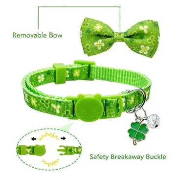 Celebrate with 2 Pack St. Patrick Day Cat Collar with Bow Tie, Holiday Kitty Collar with Bell