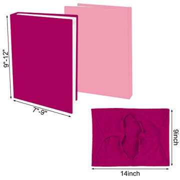 2 Pack Stretchable Book Sleeve Covers, for Paperbacks Hardcover Textbooks up to 9" x 12", Office Supplies with Free Sticker Labels (Rose Red + Pink)