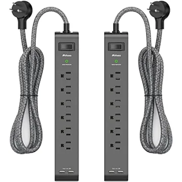 2 Pack Surge Protector Power Strip with USB Ports & Flat Plug