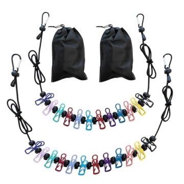 Show moreTransform your laundry drying experience with our upgraded retractable travel clotheslines. This 2-pack set is designed for convenience, durability, and versatility, making it a must-have for travelers, campers, and anyone in need of a portable drying solution. Each set includes a colorful clothing line, a storage bag, 12 clothespins, and 13 anti-slip beads to prevent clothes from sliding. The innovative design features a press button to move clips left and right, with a simple release to fix them in place. The upgraded stainless metal hooks are not only strong but also easy to install, ensuring your clothes stay securely hung wherever you choose to set up.