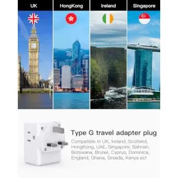 2 Pack US to UK Plug Adapter, Type G Power Adapter with 3 Outlet 3 USB Charger, International Plug Adapter, USA to Dubai England Ireland British London Hong Kong Singapore Travel Essentials