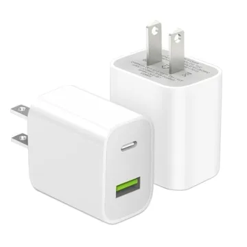 2 Pack USB C Fast Charger Block - 20W Dual Port for iPhone & Samsung