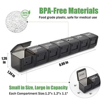 2 Pack Weekly Pill Organizer, Large 7 Day Pill Case, Daily Vitamin Case Medicine Box, AM/PM Pill Containers for Medicine Supplements Fish Oil(White & Black)