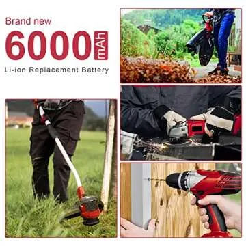 Show more Introducing the revolutionary 2 Packs 18V 6000mAh Battery Packs, specifically designed for those who rely on Einhell Tools X-Change. Are you tired of running out of battery mid-job? These remarkable battery packs are engineered to provide you with the power and reliability you need for all your outdoor tasks. With a phenomenal capacity of 6000mAh, they ensure that you can tackle extensive yard work without the hassle of frequent battery changes. You’ll find that the runtime of these batteries allows you to maximize productivity...