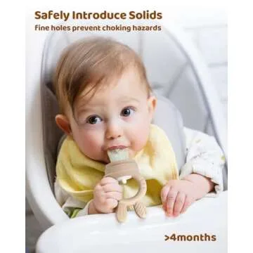 The feeder is designed for babies aged 4 to 12 months, supporting their transition to solid foods.