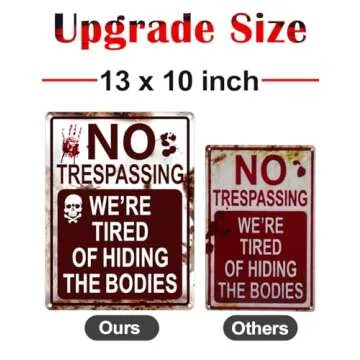 2 Packs Halloween Decoration Halloween Signs, 13"x10" Funny Metal Tin Sign No Trespassing We're Tired of Hiding The Bodies Perfect for Indoor/Outdoor