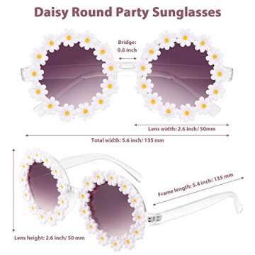 2 Pairs Daisy Flower Sunglasses for Women Round Flower Glasses for Adult kids Decor with Glasses Cloth Flannel Bag (Grey, Yellow)