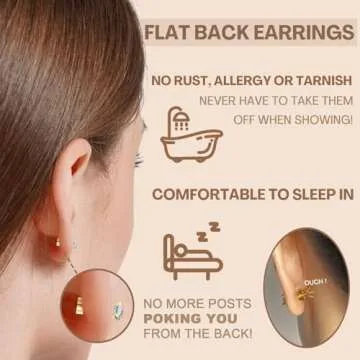 2 Pairs Flat Back Stud Earrings for Women, 18k Gold Cartilage Earrings as Screw Back Earrings Hypoallergenic for her, Nap Earring as Comfy Earrings Gifts for Her (3+5mm, Gold)