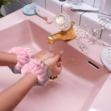 2 Pairs Wrist Washband for Women Washing Face, Wrist Spa Washband Absorbent Wristbands, Prevent Liquids from Spilling Down Your Arms(Pink, White)