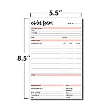 2-Part Carbonless Order Form Pad, 50 Sets (5.5" x 8.5") Wrap Around Cover, Carbon Copy Purchase Sales Receipt Book Trendy Great Size for Business Invoice