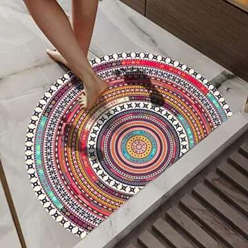 Show moreThe 2 Pcs Boho Brown Half Round Bath Mats redefine comfort and functionality in your bathroom. Crafted from innovative diatomaceous earth, these mats feature nano-absorbing pores that ensure your feet remain dry and slip-free. Bid farewell to dampness caused by traditional bath mats; with each step, feel the soft and smooth texture beneath your feet, making your bathroom experience more hygienic and pleasant. Not only are they aesthetically appealing with their boho brown design, but they also serve a practical purpose, enhancing your home’s safety and style.
