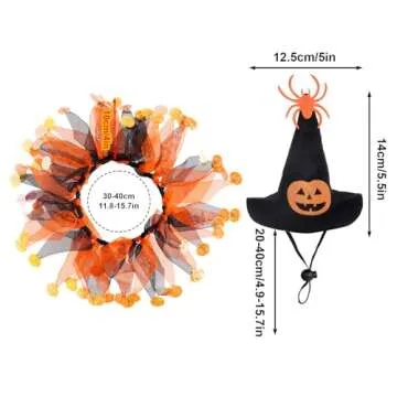 2 Pcs Cat Halloween Witch Costume Suit - Pet Witch Pumpkin Hat and Tutu Collar, Cute Cat Outfit for Cats and Small Dogs