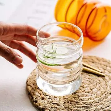 2 Pcs Creative Glass Cups Cute Ripple Shaped Vintage Drinking Glasses Ribbed Glassware Clear Aesthetic Cups Entertainment Dinnerware Glassware for Kitchen Bar Water Wine Beer Coffee Juice Beverage