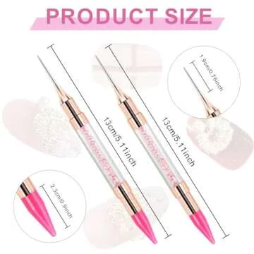 2 Pcs Dual End Nail Rhinestone Picker Dotting Wax Pen, Wax Tip Rhinestone Pen Tool, Dual Tips Pick Up Applicator DIY Nail Dotting Pen for Gems, Crystals, Nail Accessories for Manicure (Pink)