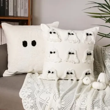 2 Pcs Halloween Pillow Covers Halloween Decorations 18 x 18 Inch Ghost Throw Pillow Covers Halloween Pillow Cases Holiday Cushion Cover Farmhouse Couch Case for Sofa Bed Home Indoor Outdoor Party Gift