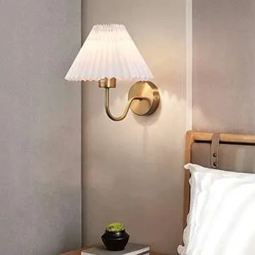 2 Pcs - Retro Pleated Fabric Shade Wall Sconce Antique Brass Finish Decorative Wall Lamp for Bedroom Bedside Living Room Hallway Study Wall Light (Color : Gold)