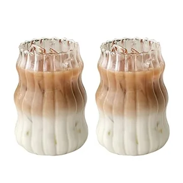 2 Pcs Ribbed Glassware Drinking Glasses - Stylish Iced Coffee Cups with Wave Design