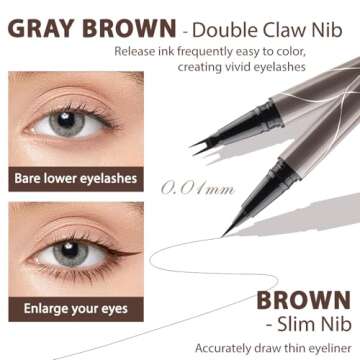 2 Pcs Set 3D Lower Eyelash Eyeliner Pencil - 2-in-1 Dual-Ended Micro Pen