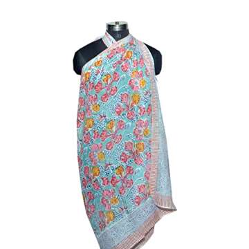 2 Piece 100% Pure Cotton Block Print Beach Sarong Swimsuit Wrap Cover Up Pareo 43X70'' Inches Multicoloured