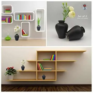 2 Piece Black Vase Set, Mini Flower Bouquet Holder, Matte Pottery Jars, Unique Mini Decorative Ceramic Vases, Cute Ornament Bottles Accessories in Home and Office (Black Set A)