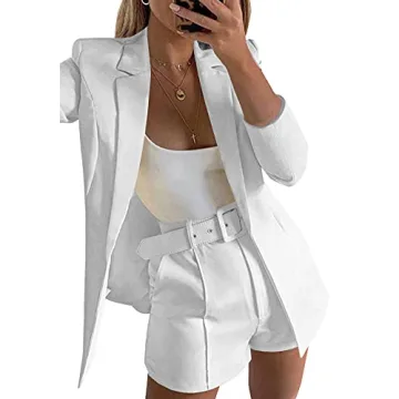 Show moreElevate your wardrobe with our stunning 2-piece blazer suit set, designed for the modern woman who values both style and comfort. This set includes a long sleeve open front blazer and chic shorts with a fashionable belt, creating a versatile look that transitions seamlessly from the office to casual outings. Made from high-quality polyester and spandex, the fabric is lightweight, skin-friendly, and features a full lining for added comfort. The blazer boasts a lapel collar and open front design, while the high-waist shorts come with practical pockets and a decorative belt for an elegant touch. Perfect for any season, this suit set is not too thin nor too thick, making it a year-round essential.