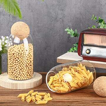 2 Piece Cork Glass Glass Jars with Cork Lid Storage Jar Coffee Jar Glass Container with Ball Cork Round Glass Bottles with Cork Glass Canisters with Airtight Seal Wooden Lid(800 ML)