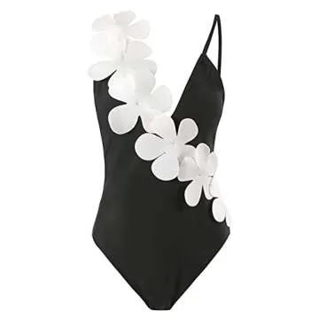 2 Piece Swimsuits for Women: Floral Swimwear with Beach Cover up Wrap Skirt Bikini Sets Summer Tropical Outfits Bra Thongs Bathing Suits Sarong Coverups Holiday Beachwear Black + White Small